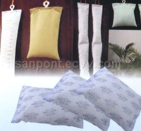 Container desiccant Container transportation has found a wide-range of application world-wide. However, a serious problem inheres in it known as " Container Rain", which has a bad influence on the goods, Worse yet, if the water condenses on the surface of metal products corrosion occurs. We offer a solution of creating a dry environment in the Containers. SANPONT can efficiently control the moisture in the containers and inhibit the formation of mold, mildew, rust and corrosion. SANPONT helps keep the Dew point temperature below the actual temperature.. Application SANPONT is widely applied in different fields, especially good for goods in ocean transit, which needs be protected from moisture damage, such as electronics and machinery, textile and leather goods, bulk grains, canned food, pet foods and chemical materials. Application Absorbent-Active Mineral: Montmorillonite, Silica gel Packing Material: Tyvek, Sanpont, nonwoven fabric, Note: Packed content of each package can be customized.