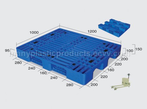 Dim.:1200?000?50mm Fork entry:4-way entry normal duty availableSuitable for use with forklift trucksSub-frame type:111 structureSuitable for use on the ground or rack Material:Impact resistant HDPEWeight:15.6kgLoad-bearing capacity dynamic:1000kg Load-bearing capacity static:4000kgLoad-bearing capacity racked:300kg