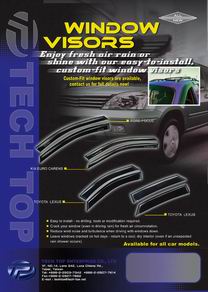 We are providing over 180 varieties of types of window visors, hood moldings, hatchback visors and sunroof visors etc. We are making in acrylic plastic material, not in PVC material. Especially, we are OEM manufactory providing distributor and wholesale dealers for new cars.