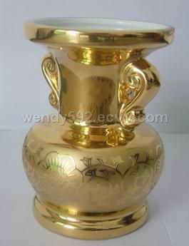 Our company can offer ceramic products with gold ,we do the products we desigh ,contain ceramic buddhism ,ceramic thurible ,and vase ,also have many different desigh ,if you are intersted in this ,please feel free to contact me ,thanks !