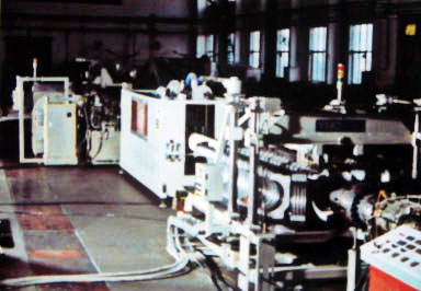 The line to make HDPE/PP/PVC(different extruder) double-wall corrugated pipe which are mainly applied for drainage, sewage; Molding machine and die are of high precision and sound interexchange. Mould cooling by water or ai, making and belling pipe at the same time. Pipe Diameter: φ90-φ160 φ200-φ400/500 φ500-φ800/1000 φ600-φ1200