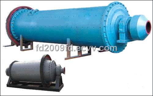 The ball mill is a skeleton pattern ball mill with horizontal cylindrical turning gear, drive by outer gear and two hoppers. The material goes to the first hopper after the spiraling by the quill shaft from the feeding equipment. The hopper has ladder sheathing or corrugated sheathing with steel balls inside, which will fall under the effect of centrifugal force by barrel turning to ram hard and grind material. After the kibbling in the first hopper, by monolayer partition panel, the material will enter the second hopper, which has plane scale board with steel ball inside to grind material. The powder material will be discharged from the grid plate to finish the grinding.