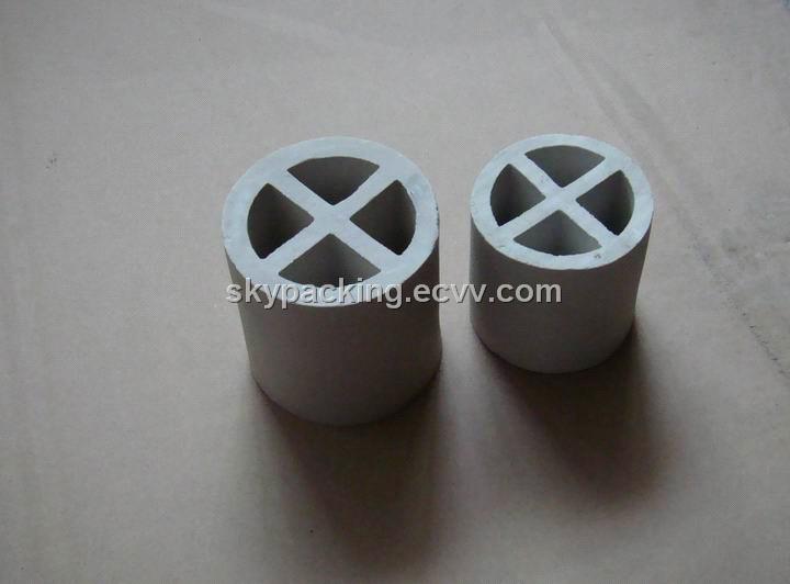 Ceramic Cross-Partition Ring is a packing designed basically from the Raschig Ring with the cross-partitions inside to increase the surface and enhance the transfer efficiency. It is usually used extensively for the supporting packing at the bottom of tower. Size 80-150mm ceramic cross-partition rings with the void more than 60% are utilized as the supporting material.