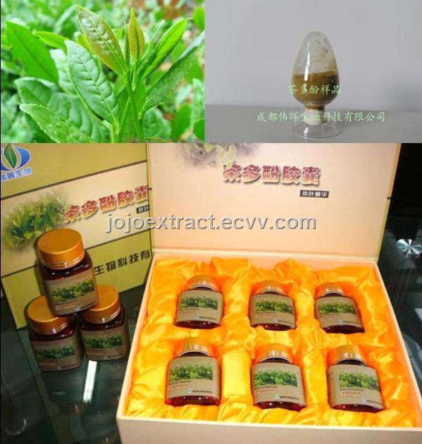 Green tea extract's raw material is from natural green tea extract refined via high-tech, the polyphenol content of raw material is not less than 98%, catechin content is not less than 80%.