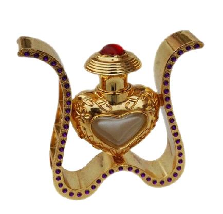 This perfume bottle is made of metal parts and glass bottle.