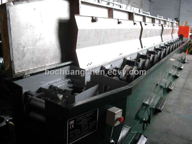 4.2 The drawing capstans are arranged in inclined rows so as to avoid scratches to the wire. The machine has a high strength and rigidity; the drawing capstans and final capstan are driven by separate motors, and a general line construction is adopted to achieve adjustable synchronized speed, able to change the dies rapidly; The drawing capstans are fully submerged in the coolant so that the dies and the wire can be cooled and lubricated thoroughly;