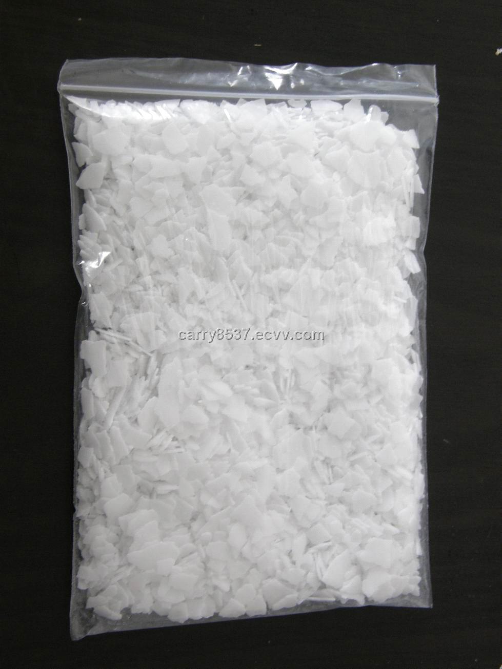 Characters: white flakes. It is one of the strongest alkalis. Flake is able to react quickly with moisture liberating heat.