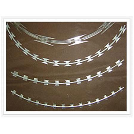 Razor barbed tape is a kind of modern security fencing materials fabricated with razor-sharp steel blade and high-tensile wire. Barbed Tape can be installed to achieve the result of frightening and stopping to the aggressive perimeter intruders, with piecing and cutting razor blades mounted at the top of the wall, also the special designs making climbing and touching extremely difficult. The wire and strip are galvanized to prevent corrosion.