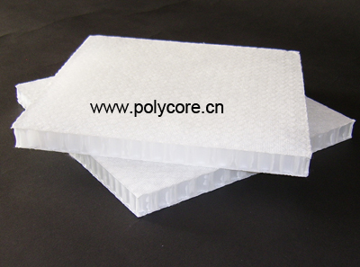 Polycore Technology PP honeycomb can be supplied with both sides laminated with non-woven polyester tissue 45 g/m2. This allows better bonding of the honeycomb to different panels. In addition to the tissue, honeycomb can be supplied with a PP film. The film under the tissue acts as a barrier to prevent resin leaking into the core and thus save resin consumption. This allows the honeycomb to be put into applications without using additional panels in special project.