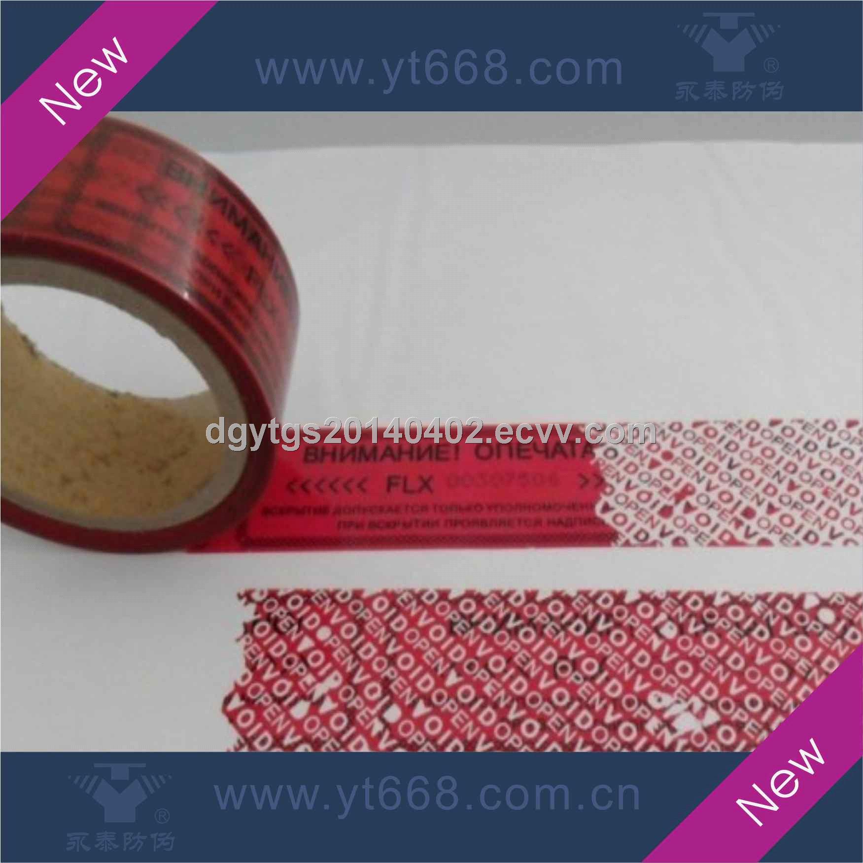 1, Special technology is used to make a type of matrix on the reverse side of the material. (Commonly, the matrix goes " VOID" , " OPENED" , or special version specified by the customers. ) When the sticker is tore up from the surface of the object, the preestablish matrix or pattern will stay on the surface of the object perfectly. And the sticker can not be recovered any more. It plays an important role in warning. It is used to distinguish the phenomenon that the products are to be opened without authorization and illegally. It can also help to protect the trademark of the application products effectively.