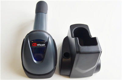 The barcode reader goes with a base, the base works as a receiver(the receiver with USB/RS232 port to connect with PC, also with build-in memory which can store 4000bits data. ) and also a charger for the barcode reader.