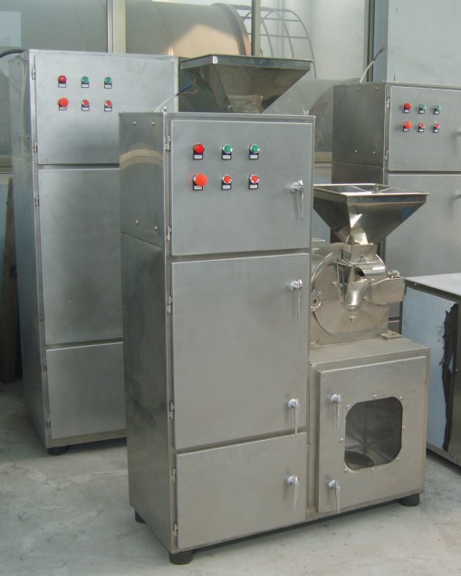 This machine utilizes the high--speed relative motion between the moving and regular tooth set, which makes the material crushed through concussion, rub and crush between the materials. The structure of machine is simple, firm and operating steadily and the result of crushing is well, no dust nuisance. The crushed material is discharged directly from mainframe. The different sizes of the granule are gained through replacing different pore sizes of sieve. In addition, this machine is made of the whole stainless steel, surface of the inside of the machine is smooth, which changes the phenomenon of inboard wall coarse and accumulating of powder in the past. It meets national standard even more to make medicines, food, chemical industry, etc, and meet the requirement of GMP.