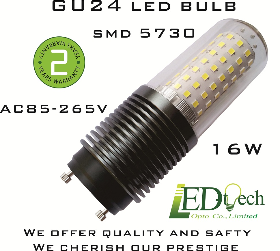 GU24 LED bulb AC85-265V 16W LED GU24 bulb SMD 5730 GU24 LED lamp beam angle 360 degree replace halogen GU24 bulb