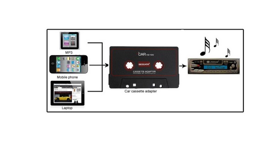 ? Insert the adapter into cassette deck as you would an ordinary cassette. Press play and adjust to desired volume.