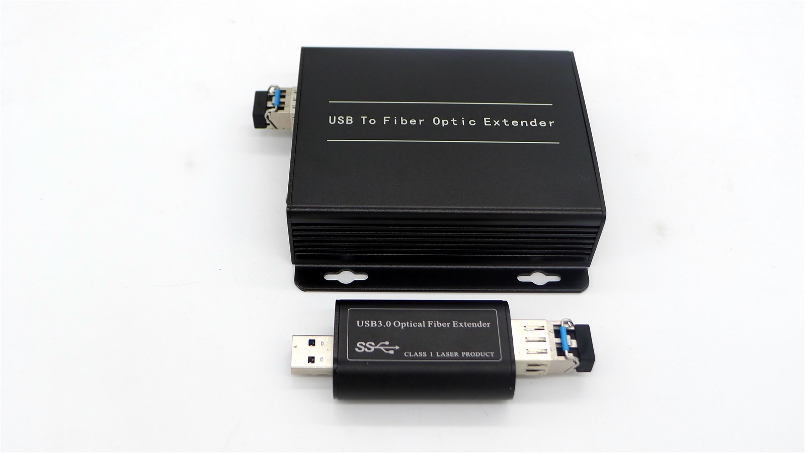 USB3.0 Optical Fiber Extender, also called USB3.0 to Fiber Converter. the device includes a transmitter(client-side) and a receiver(host-side), which can extend the SuperSpeed USB3.0 to a remote location over 1or 2 core fiber cable, max distance 250m (SM or MM fiber cable). Product specification: Optical Connector Duplex/Single LC Wave length 1310nm/1550nm Physical Size (L W H) 104mm x104mm x28mm Case Aluminum Color Black N.W. 0.75Kg Power Voltage 5V DC Sender power consumption <5W Receiver power consumption <5W Environment Working temperature 0-50 Storage temperature -40-85 Humidity 0-95% (non-condensing) Panel diagram: Equipment powered sequence: (1) Receiver(host-side)input USB3.0 port (2) Transmitter(client-side)powered with the DC 5 v adapter (3)the USB3.0 device connect to the transmitter(client-side) Note: If the host PC does not recognize the device, you can carry out the following operations: 1 press the the REST key of transmitter(client-side)5 seconds, restart the device. 2 Connect another USB3.0 interface of host PC. 3 uninstall the "USB3.0 hub" in the device manager, re connect. When the device is working, do not plug USB3.0 and fiber cable, so as to avoid the equipment does not work properly. Connection diagram: