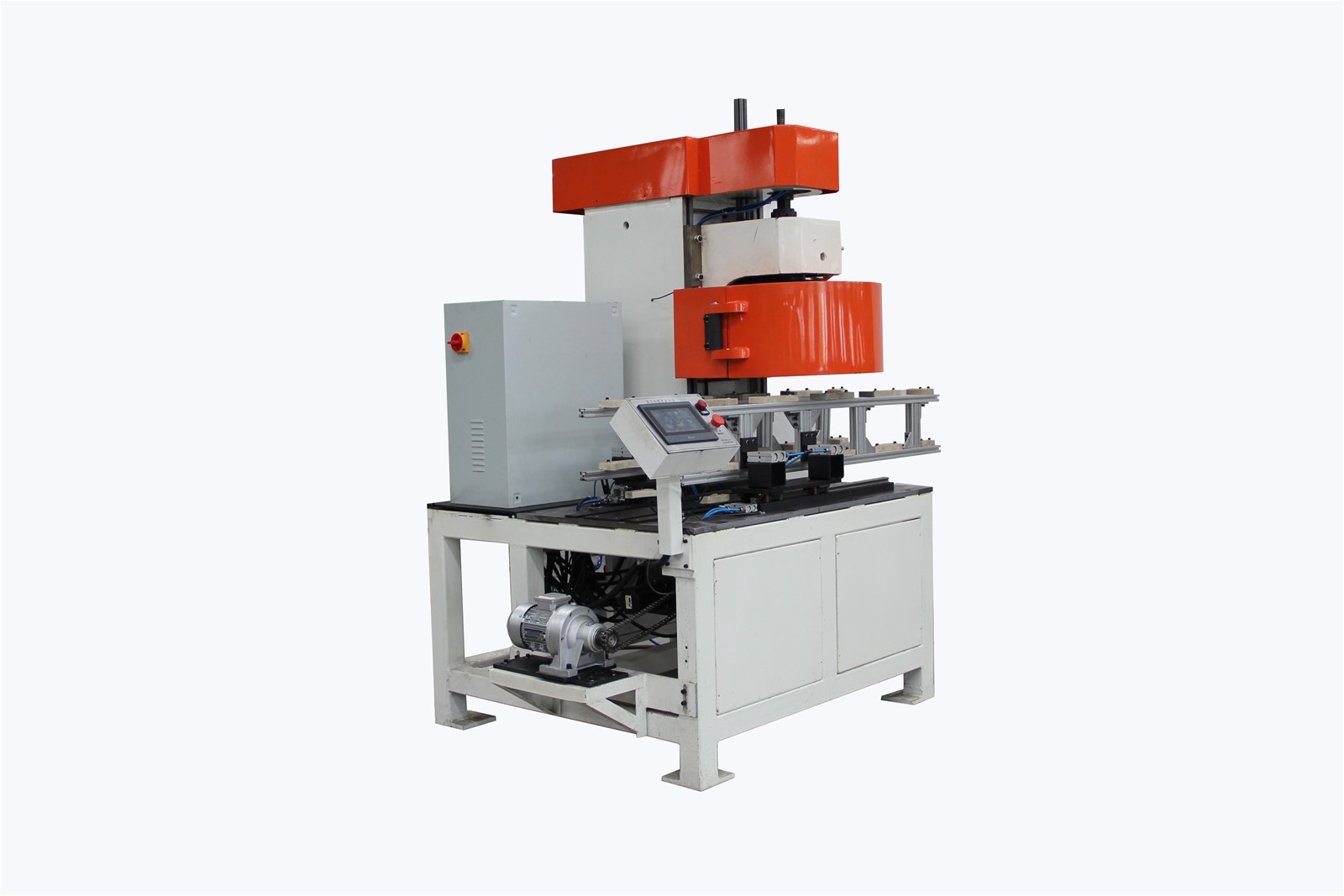 this machine is a kind of advanced automatic production equipment, mainly used for the sealing of big round cans or pails, which can firmly combine the can body and its cap. PLC and touch screen 's control makes the machine easy to operate. the cans are located and conveyed by the servo machine, making the work highly precise and speedy.