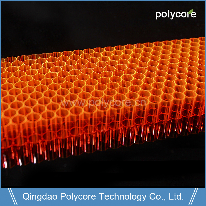 Polycore PC honeycomb can apply into window to save energy consumption, the window installed with transparent PC honeycomb can lessen heat loss 80 Percent than common window;