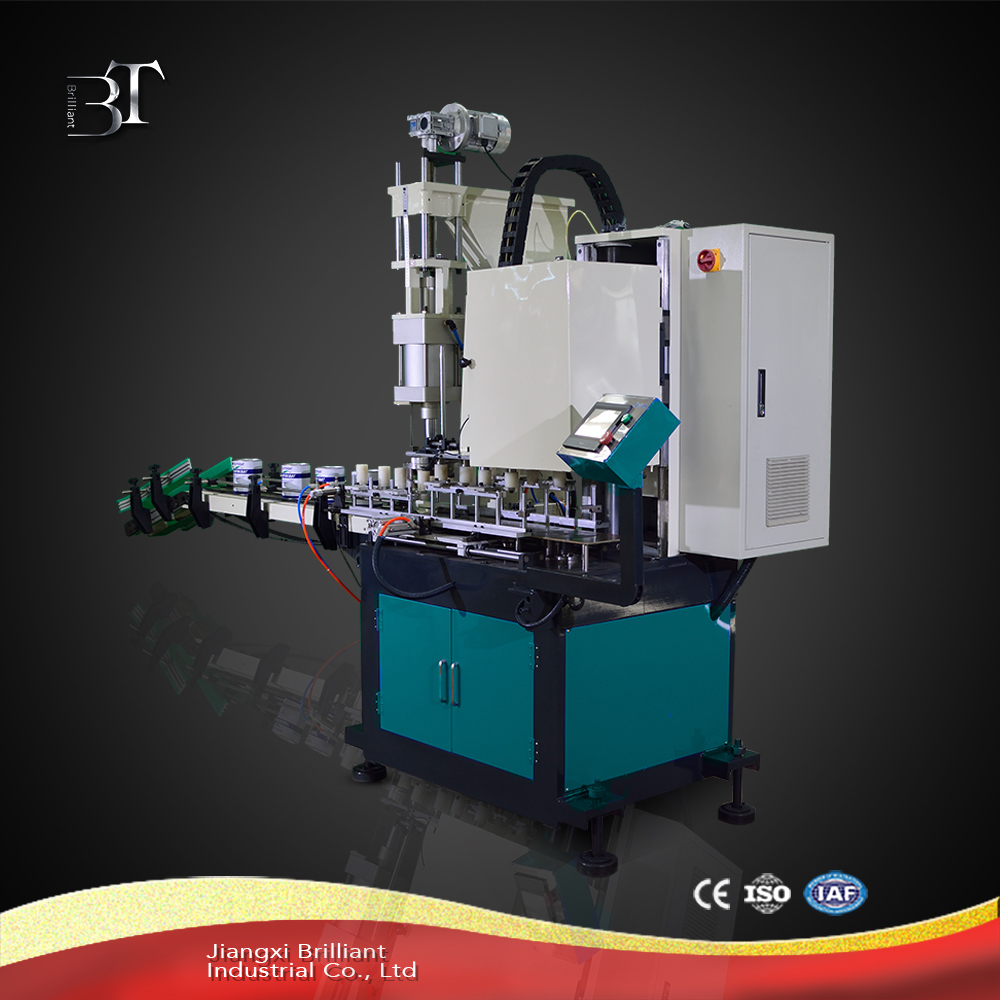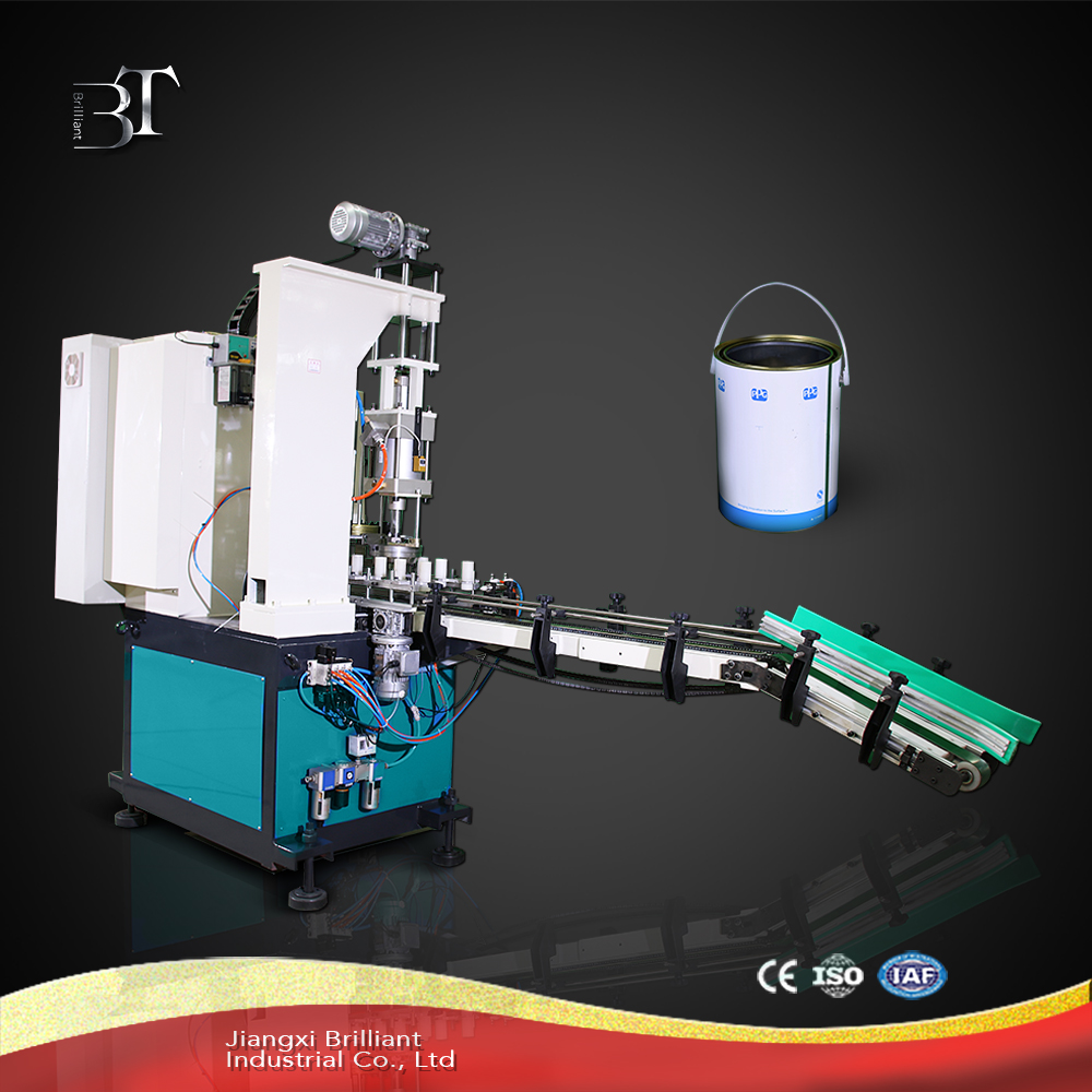 this line is suitable for 1L-5L round can automatic making. Machines adopts modular design which integrated automatic can standing, automatic flanging, automatic lid feeding, automatic top lid sealing, automatic reversing, automatic buttom lid sealing, this automatic can making production line is specially designed for food can, chemical barrels. Automatic flanging and automatic lid feeding are optional configuration,customers can choose by their own.