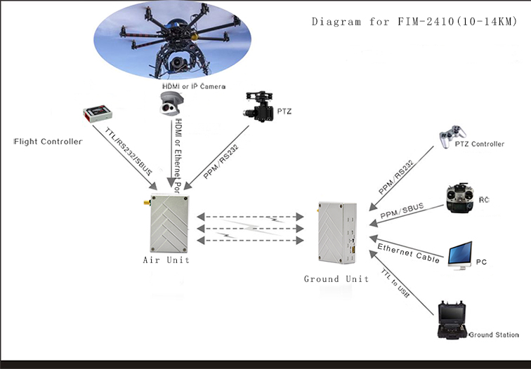 FIM-2410 is IFLY ultra long range UAV video downlink, which have UHF2.4GHz to meet the market different demands.Transmission range can up to 60km,which is the best choice for FHD ultra long range UAV video transmission.