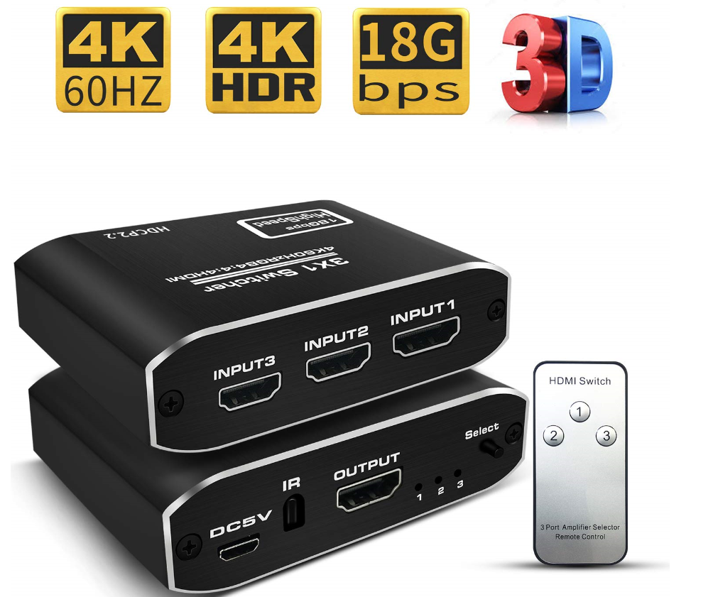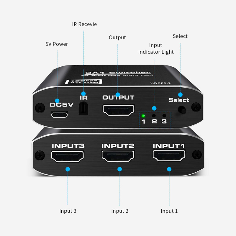 2019 New Arrival Metal HDMI2.0 Switch 3X1 with RF Remote