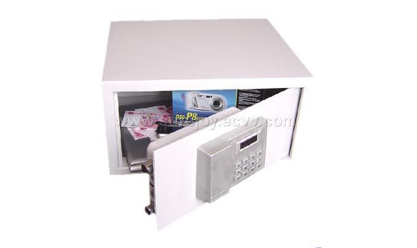 Product Name? Safe Model #? SA-B Features? convenience, simple and direct. 1.Patented product. 2.Full-automatic switch box, no handles needed. 3.The spare machine key supplied. 4. Numeral/ the LCD shows various operation information. 5.Battery power supply, the battery life more than a year. 6. Network interface, can connect and use with the control system of the guest room. 7. Novel & succinct design. External Size? W350 x D410 x H220mm Net Weight? 10.5 kgs Gross Weight? 11 kgs Carton Meast.? W440 x D490 x H280mm 20 FT. Container? 463pcs