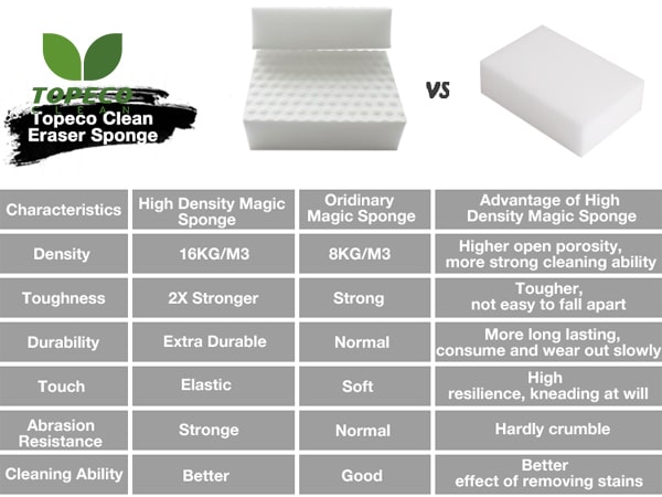 MR. TOPECO magic melamine sponge internal three-dimensional mesh openings. High porosity enjoys good water absorption and oil absorption, which can quickly take in stains without solvent cleaner. What's more, it can be eliminated stubborn dirt.