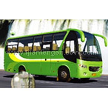 Features: 1) Overall length (mm): 7, 640 2) Overall width (mm): 2, 300 3) Overall height (mm): 3, 250 4) Axle base (mm): 3, 800 5) Front / rear overhang (mm): 1, 390 / 2, 450 6) Approach/departure angle: 20 / 11 7) Wheel base (mm): 1, 860 / 1, 612 8) Rated max. Mass (kg): 7, 800 9) Rated passenger number (person): 26 + 1 (24 - 31) 10) Top speed (km/h): 110 11) Engine: A) Model: EQ6102DT-20 B) Manufacturer: Dongfeng Automobile Co. Commercial Vehicle Engine Works C) Position: Front mounted D) Type: In line, pressurized, mid-cooling E) Max power (kW / ps): 103 / 140 F) Max torque (N. M / rpm): 405 / 1, 500- 1, 700 G) Exhaust (ml): 5, 638 H) Fuel: Diesel I) Emission standard: EURO ll