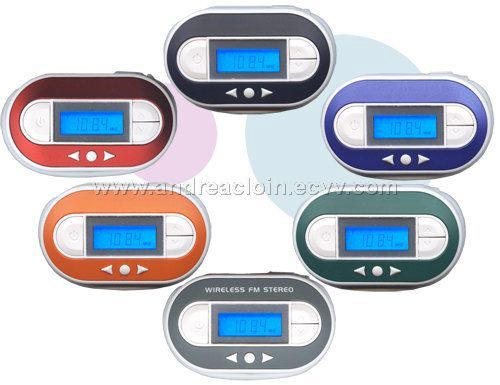 Stereo and apply to DIGITAL PLL technology Unique upgrade-contours design LCD display , Display the temperature Low voltage protected function 215 Channels spots (87.0-108.5 MHz) 10 Memory spots (when battery is out of storage) 2 kinds of power: battery or rechargeable Suitable for MP3, MP4, PDA, Notebook, PC, CD, MD, DVD Supply power of a USB port for mp3 Specification: The transfer is a easy carry on CD, MD, MP3, MP4, PDA, Notebook, PC, and USB with port etc. Frequency response: 20Hz-20KHz Separation : >=50dB Operating current: 38Ma Operating volt: 1.5~3V Transmission range: 87.5-108.0 MHz (interval 0.1MHz) Power source: 2AAA batteries or the car''''s power source Connect line 190mm Dimension: D79.4 x W53.6 x H26mm Weight: 63g (ex battery) Accessories: a charge, suitable for MP3, MP4, PDA, Notebook, PC, CD, MD, DVD