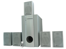 Features: 1) Output power: 35W + 10W x 5 2) Dimension: a) Subwoofer: 160 x 305 x 350mm b) Satellite: 106 x 141 x 90mm 3) Weight: about 8.8kg 4) Speaker: 3", magnetically shielded, 4Ω, 10W 5) Subwoofer:5.25", magnetically shielded, 8Ω, 35W 6) IC: 2030A x 7 7) Transformer: 6645 8) With remote control Packing: 2sets/carton Color box dimensions: 378 x 338 x 342mm Carton dimensions: 691 x 393 x 362mm Conveyance: Qty/20'FCL: 568sets Qty/40'FCL: 1178sets Qty/40'HQ: 1382sets