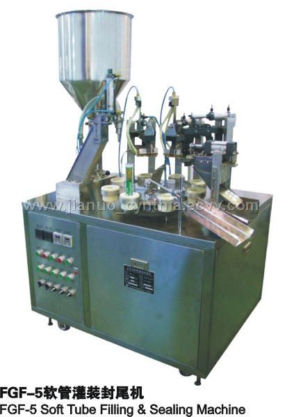 Laminated tube filling and sealing machine is made of stainless steel, the process is button control; manual work put tube, 8 tube base automatism turning,ration filling,automatism cut off, heating & sealing. All the process control by the cylinder, easy to adjust the filling quality, filling speed is tunable. This machine used for the all kinds of the plastic tube and the laminated tubing to filling ,sealing,indentation date,cut end. Sealing is beauty, the seal fastness. According to the material can choose chute heating systel,avoid drawbench nozzle
